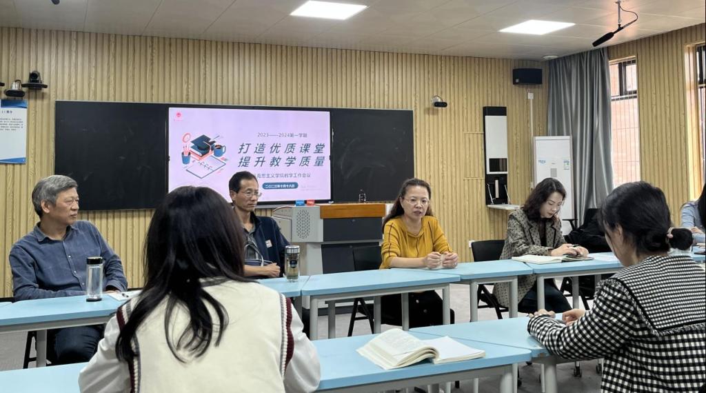 为全面深入诊断思政课教学中存在的问题,有效提升思政课教学质量,2023年10月18日下午,jdb电子游戏官方网站在一教211智慧教室召开“打造优质课堂 提升教学质量”教学工作专题会议。院长吴玲、马院的教授、青年教师导师以及特邀淮北师范大学马院副教授宇海金博士和全体马院教师参加会议,院长助理陈志操主持会议。