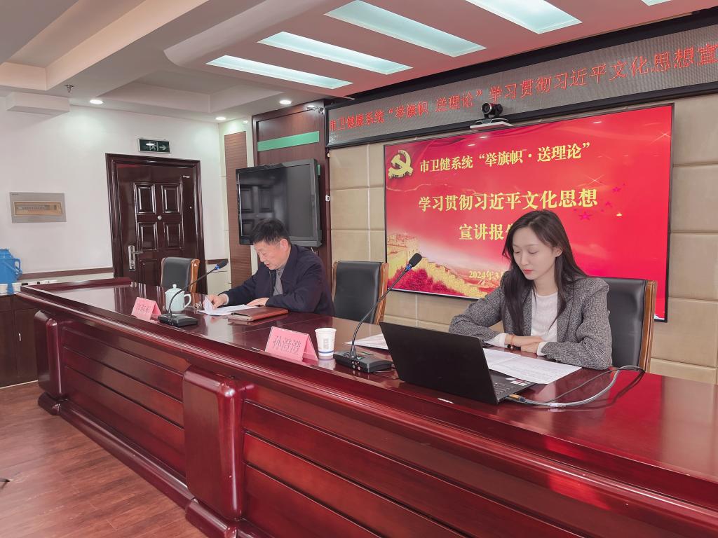 为深入学习贯彻习近平文化思想,奋力打造习近平文化思想生动实践地,加快建设繁荣兴盛的文化强市,3月21日下午,jdb电子游戏官方网站孙澄澄作为淮北市委宣讲团成员,走进淮北市卫生健康系统开展“举旗帜·送理论”专题宣讲活动,作题为《深入学习贯彻习近平文化思想·加快建设繁荣兴盛的文化强市》的宣讲报告。