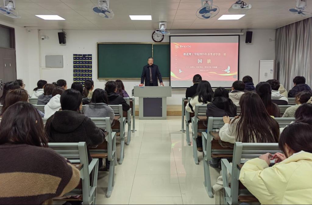 3月19日下午,jdb电子游戏官方网站校党委书记、督导专员朱德顺在春季学期开学初,于第二教学楼206教室为学生们开讲了一堂以爱国主义教育“国旗”为题的开学第一课。本次活动由教务处副处长秦品德主持,全校各学院学生代表百余人参加了此次活动。