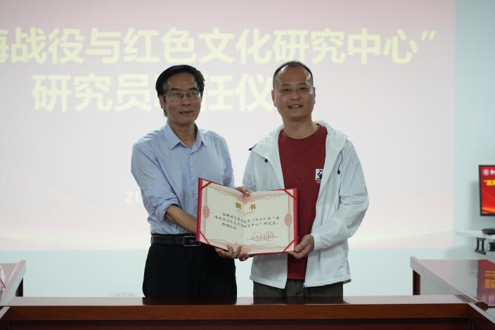 仪式最后,石振宝受淮海战役与红色文化研究中心指派向尤良怀颁发聘书。此次聘任为淮海战役与红色文化研究中心发展增添新力量。下一步,淮海战役与红色文化中心将充分利用校内外资源,不断提升红色文化研究的专业化、品牌化水平,为传承红色基因、弘扬革命精神作出新的更大贡献。