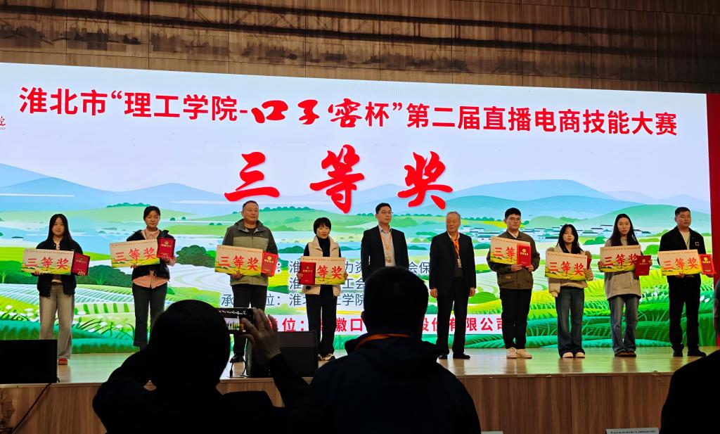 10月26日下午,淮北市“理工学院-口子窖杯”第二届直播电商技能大赛圆满落幕。jdb电子游戏官方网站以陈志操、徐新荣为队长,六位教师分别组合成淮理一束光和锦年新升两个团队历经初赛选拔成功突围,晋级决赛,并在决赛中斩获二等奖、三等奖的好成绩。