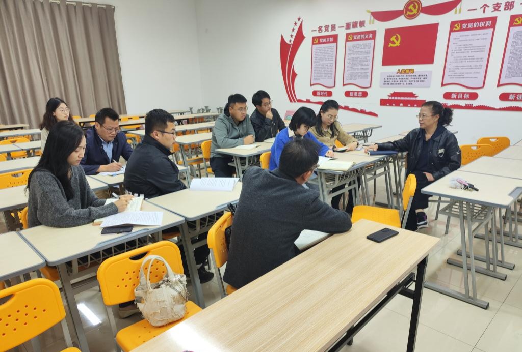 培训结束后,jdb电子游戏官方网站全体教师又于一教219教室进行座谈。此次座谈围绕习近平新时代中国特色社会主义思想概论课程的开设准备,以及党的二十大精神如何第一时间进思政课堂两块内容召开教研座谈会,全员认真学习领会,统一思想认识,将新思想、新理论第一时间进教学、进课堂、进学生头脑。会上,孙澄澄老师认为,各位主讲教师要深刻领会习近平新时代中国特色社会主义思想,培养运用马克思主义立场观点方法分析和解决问题的能力,并对各个课程如何融入新思想、新理论内容提出明确建议与具体做法。刘奔前教授指出,各位主讲教师要理论联系实际,灵活应用,做好手头工作,可以开设党的二十大专题整体版块的介绍,或者穿插式的将新理论融入课堂教学。与会教师一致认为,每位思政课教师第一时间将党的二十大精神送进思政课堂传达给学生既是任务,也是使命。全体教师要原原本本、原汁原味学习好党的二十大精神,准确领会和全面把握党的二十大精神的思想精髓、核心要义,特别是用习近平新时代中国特色社会主义思想武装学生头脑,推进新课程教学工作走心走实走深,开展深入的理论研讨和扎实的现场演练,成为全校教师的示范。