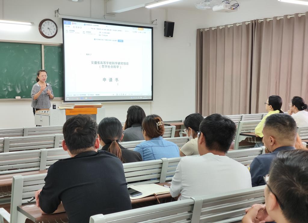 其次,院长对撰写申报书及评审过程中容易出现的典型问题进行了阐述和分析,接着又详细讲解了申报书的结构、书写规范及撰写技巧等内容,其中包括研究现状、研究课题存在的问题、拟解决的问题及意义、课题研究思路和方法等几大板块。另外,吴院长强调参考文献的引用要注意与选题之间的关联度,最好引用近五年内的最新文献。最后院长还给老师们带来了往年优秀科研申报书的实例展示和讲解。