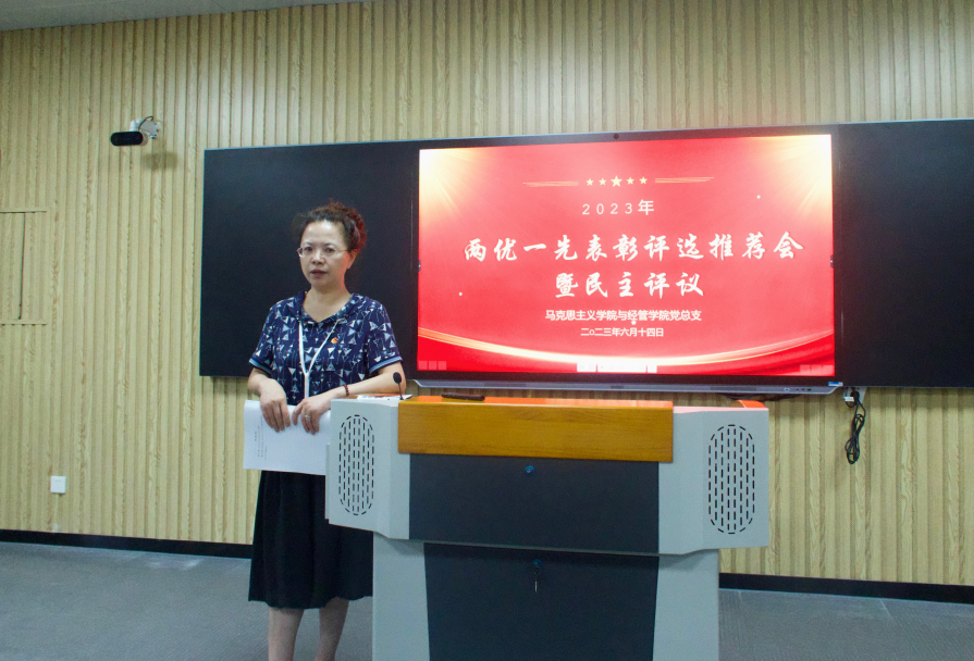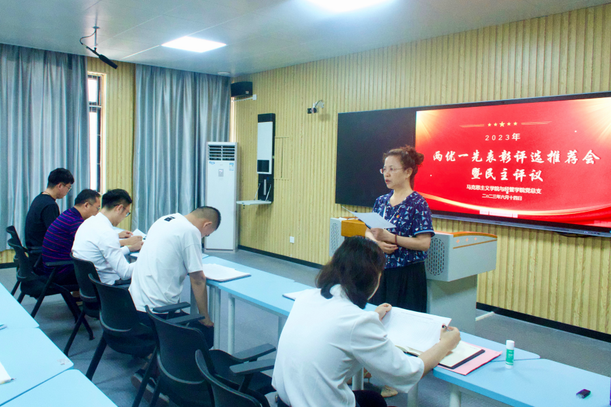 根据学校党委《关于开展2023年“先进基层党组织、优秀共产党员、优秀党务工作者”评选表彰活动的通知》精神,6月14日下午,jdb电子游戏官方网站与经济管理学院党总支组织召开“两优一先”表彰评选推荐会暨民主评议党员活动,总支书记吴玲主持会议,两个学院的全体党员教师参会。