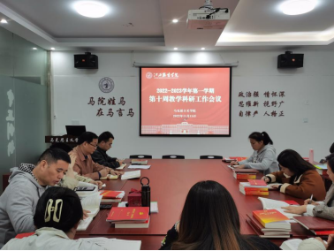 在会议上,贺松兰副院长通报了学校教务处等部门进行教学中期检查情况,强调本学期现在到期末这一阶段的主要教学工作,同时结合2022年教学科研等重点工作内容进行安排部署,一是要完成好教学工作,做好日常教学与督导巡课工作;二是要做好思政课理论教学和实践教学,将党的二十大精神融入思政课教学当中,要以课程组为单位积极开展集体备课和交流研讨活动;三是要积极融入学校浓厚学术科研氛围,积极申报省级、国家级社会科学基金项目,要找准科研方向,明确科研思路,有计划有组织地开展学科科研;四是中青年教师要多加强学习和思考,要主动地进行科学研究,多动笔,勤练习,争取早日有更大提升。