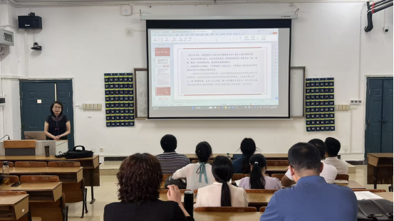 本次集体备课会采取“专题说课+教学展示+案例研讨”相结合的形式,由课程组教师于延晓教授主讲。于教授首先针对第二章“以中国式现代化全面推进中华民族伟大复兴”进行了10分钟的说课。她从基本概念、逻辑体系、教学思路出发,系统阐释章节定位:“作为承接第一章重大时代课题的关键内容,本章聚焦中国式现代化的理论内涵与实践路径,其不仅是马克思主义基本原理同中国具体实际相结合的创新成果,更是全面建设社会主义现代化国家的行动指南,是后续各章节具体举措阐述的逻辑起点。”于教授结合学界前沿理论,梳理了“中华民族伟大复兴中国梦——两个一百年奋斗目标——中国式现代化”的递进关系,明确“中国式现代化的中国特色”“本质要求”“世界意义”三大核心知识点,为参会教师厘清了理论教学的主线脉络。同时,针对章节中的重要概念,从多维度进行了解读,让抽象的理论变得清晰易懂。