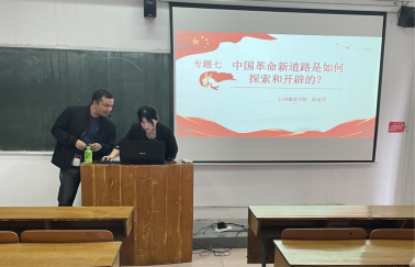 2023年5月10日,在“中国革命新道路是怎样探索和开辟的”这一专题教学中,开云kaiyun官方网站王敏老师向同学们讲清楚这一专题的教学目的与要求,从理论逻辑与实践逻辑上向同学们讲述清楚“认识国民党政权的阶级性质,认识探索中国革命新道路的曲折发展历程,以及革命新道路理论的形成,以及认识“农村包围城市,武装夺取政权”的这一革命新道路理论是中国共产党集体智慧的结晶,是马克思列宁主义的基本理论与中国革命具体实际相结合的典范。”等内容;人文学院陈家华老师则从“中国为什么必须继续革命、马克思主义为什么必须中国化、中国革命的道路为什么必须从农村开始、为什么必须弘扬井冈山精神”等四个方面通过生动的讲述和鲜活的案例向同学们进行讲述。