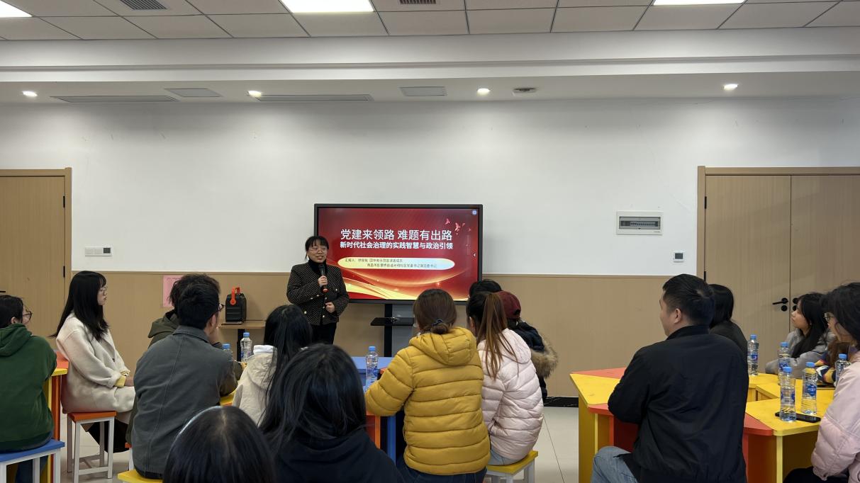 社区党委书记徐玫玫以“党建来领路,难题有出路——新时代社会治理的实践智慧与政治引领”为题为大家带来一场生动的思政课,她用“支部建在网格上”“幸福食堂暖民心”等鲜活案例,诠释了“党的领导是基层治理的根本保证”。课堂互动中,“青年如何参与社区治理”的探讨,让学生们明晰了社会责任与青春担当。参与学生纷纷表示,此次实践不仅是理论学习,更是精神洗礼。