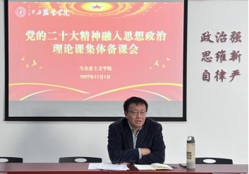 肖杰院长强调,作为一名思政课教师,在自己研读二十大报告、党章原文之外,还要扎扎实实地把二十大的精神融入到日常的教学中。学校的思政课,是践行立德树人的关键课程,在育人过程中起着“铸魂”的重要作用。必须把党的理论最新成果融入到每一门思政课程里、融入到每一堂思政课中。希望大家主要做到以下三点:一是全院教师开展二十大精神大学习的活动,在精读二十大的文献的同时,及时阅读有关二十大最新的理论文章,并由教授、博士教师领讲领学,同时积极参加校内外有关的讲座,在学习中掌握二十大的精神要义。二是把二十大精神融入到集体备课中,为二十大精神融入教学做充足的准备。在集体备课中,要求必须结合二十大精神。思政课程体系中每一门课程都是与现实联系最为紧密的育人课程,政治性是思政课的第一属性。把党和国家大政方针,党的最新理论成果与思政课相结合,把二十大精神融入到每堂课的教学中是思政课的本质属性决定的。学院将以课程为单位进行的每周集体备课的内容作了与时俱进的变更,彰显了思政课政治性的鲜亮底色。三是要求学院的教师做二十大精神宣讲工作的积极参与者。在二十大精神宣讲方面,思政课教师责无旁贷,不仅要积极参加对校内师生员工的宣讲,还要走出校园,承担社会上宣讲二十大的任务。同时肖杰院长指出,全体教师要与本职工作结合起来学习宣传贯彻二十大精神,才能形成合力,在全面建设社会主义现代化国家的新征程上做出一份贡献。