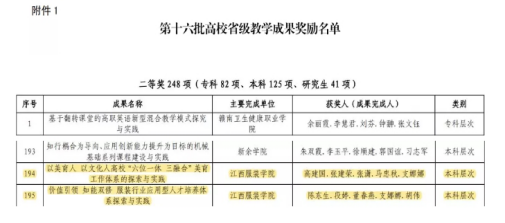 近日,教育厅发布“关于第十六批高校省级教学成果奖励名单的公示”,开云官网由陈东生、段婷、董春燕、支娜娜、胡伟申报的“价值引领 知能双修 服装行业应用型人才培养体系探索与实践”,由高建国、张建荣、张潇、马忠秋、支娜娜申报的“以美育人 以文化人高校“六位一体 三融合”美育工作体系的探索与实践”2个项目获教学成果奖二等奖。
