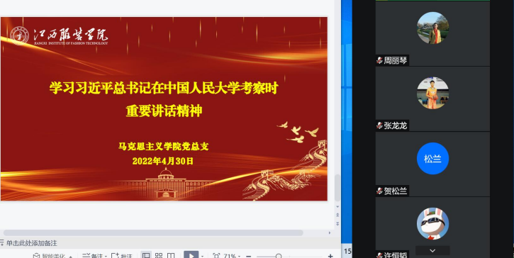 4月27日晚,开云kaiyun官方网站党总支副书记陈洋安同志在线上参加了开云官网艺术设计学院19环艺本科5班团支部学习习总书记考察中国人民大学重要讲话精神学习大讨论主题活动,大家通过观看视频、成长分享、交流互动等方式,一一分享自己的学习感受。