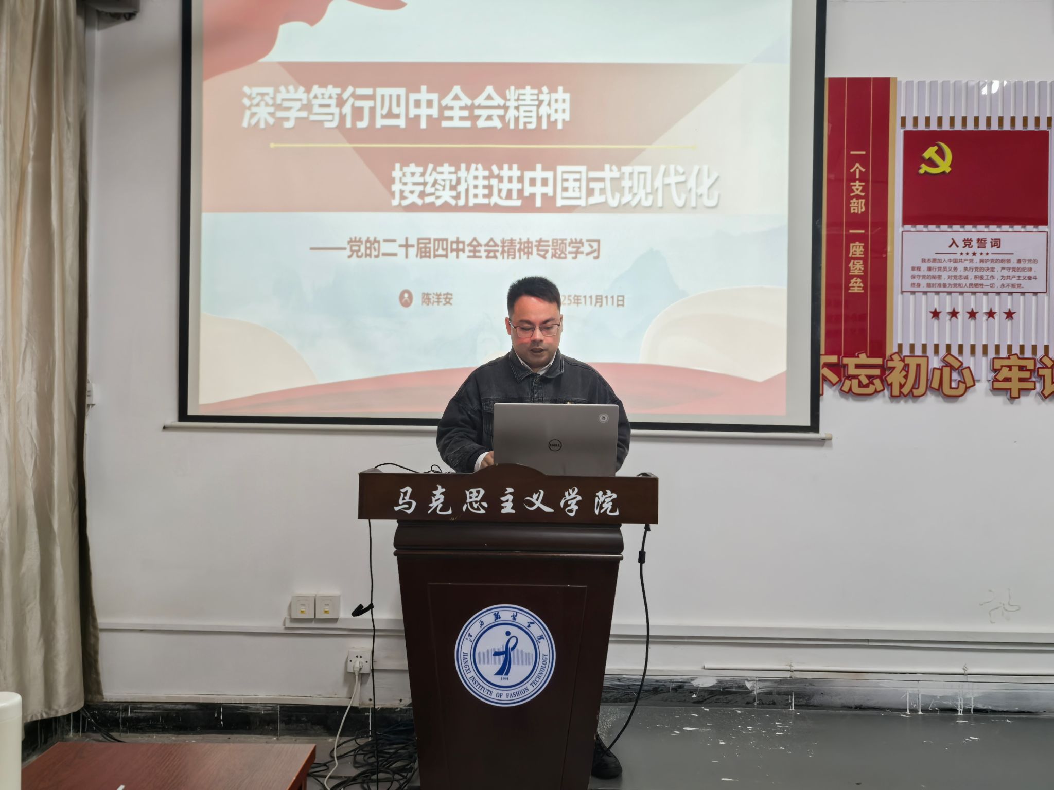 陈洋安就如何学习贯彻全会精神提出四点建议。一是铸魂定向,以理论武装夯实根基。他强调,思想是行动的先导,理论清醒是落实坚定的前提。全体思政课教师要把全会精神融入思政课堂,将理论学习与思政课改革创新相结合,通过专题备课、案例教学等形式,让党的创新理论成为滋养学生成长的“精神养料”,以理论清醒保证行动坚定。二是靶向发力,以系统思维破解难题。面对学院发展中的重点和难点问题,要摒弃“碎片化”思维,树立“全局观”意识。围绕课程建设、科学研究、师资培养等重点任务,整合资源力量、打通堵点和淤点,推动教学科研与育人实践同频共振,实现各项工作提质增效。三是闭环赋能,以制度建设强化效能。要将全会精神落实情况纳入日常督导,通过制度约束确保各项部署不打折扣、落地生根,以刚性制度为工作推进保驾护航。四是强基固本,以作风能力筑牢保障。全体党员干部要发挥“头雁效应”,以过硬作风扛起育人责任,带头深入师生调研、破解实际问题;全体教师要强化师德师风建设,将育人初心融入日常工作,以扎实本领和优良作风为学院发展贡献力量。