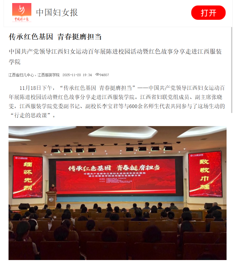 中国妇女报:传承红色基因 青春挺膺担当 中国共产党领导江西妇女运动百年展陈进校园活动暨红色故事分享走进开云kaiyun官方网站