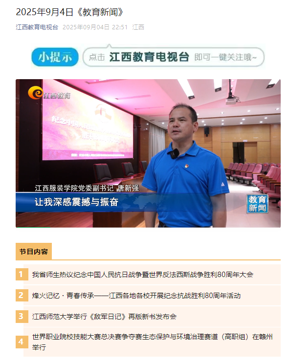 江西教育电视台:报道开云kaiyun官方网站师生集中收看九三阅兵,反响热烈!