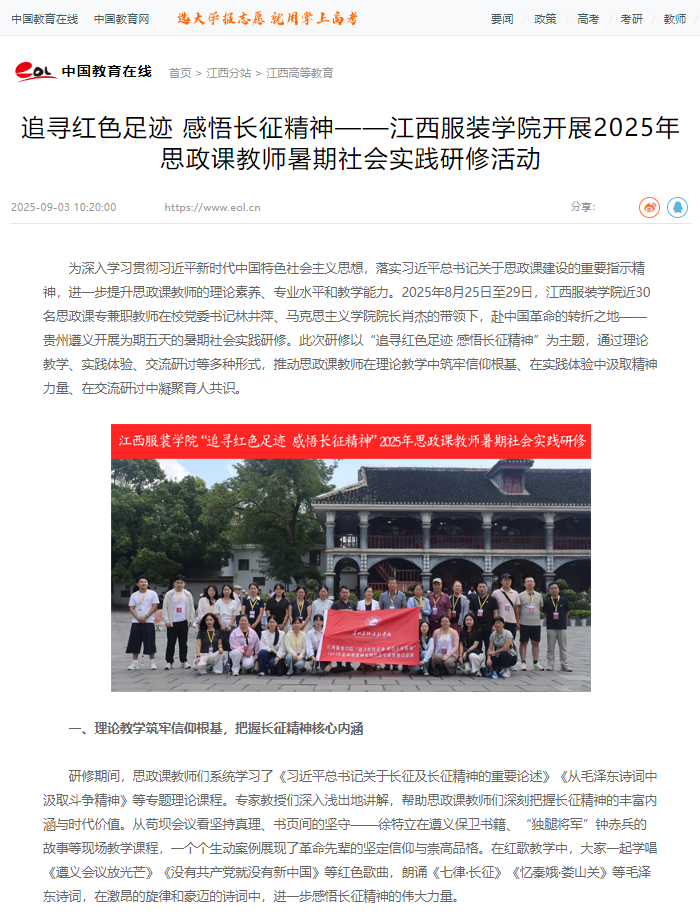 中国教育在线:追寻红色足迹 感悟长征精神——开云kaiyun官方网站开展2025年思政课教师暑期社会实践研修活动