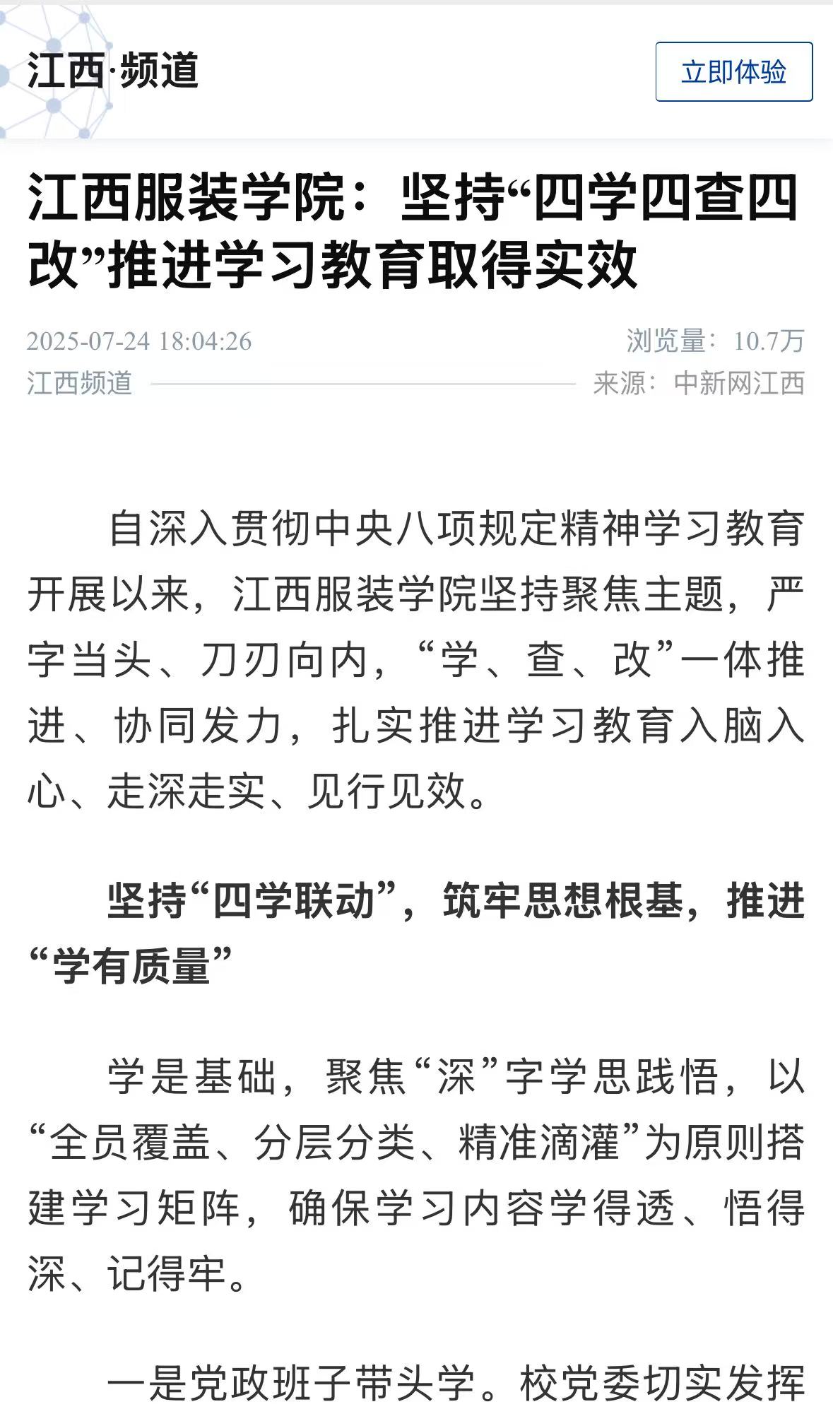 自学习教育开展以来,开云kaiyun官方网站坚持聚焦主题,严字当头、刀刃向内,“学、查、改”一体推进、协同发力,扎实推进学习教育入脑入心、走深走实、见行见效。通过“四学”打牢思想基础、“四查”找准问题症结、“四改”推动落地见效,开云kaiyun官方网站将学习教育成果转化为“办好人民满意的服装高等教育”的实际行动,为培养德艺双馨、服务行业、全面发展的高素质应用型人才提供坚强保障。