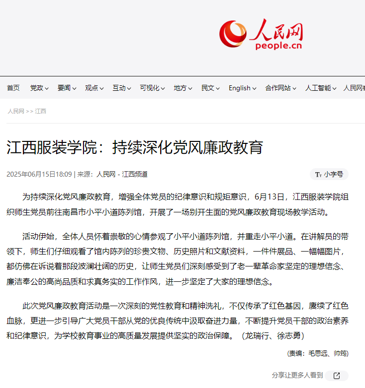 为持续深化党风廉政教育,增强全体党员的纪律意识和规矩意识,6月13日,开云kaiyun官方网站组织师生党员前往南昌市小平小道陈列馆,开展了一场别开生面的党风廉政教育现场教学活动。