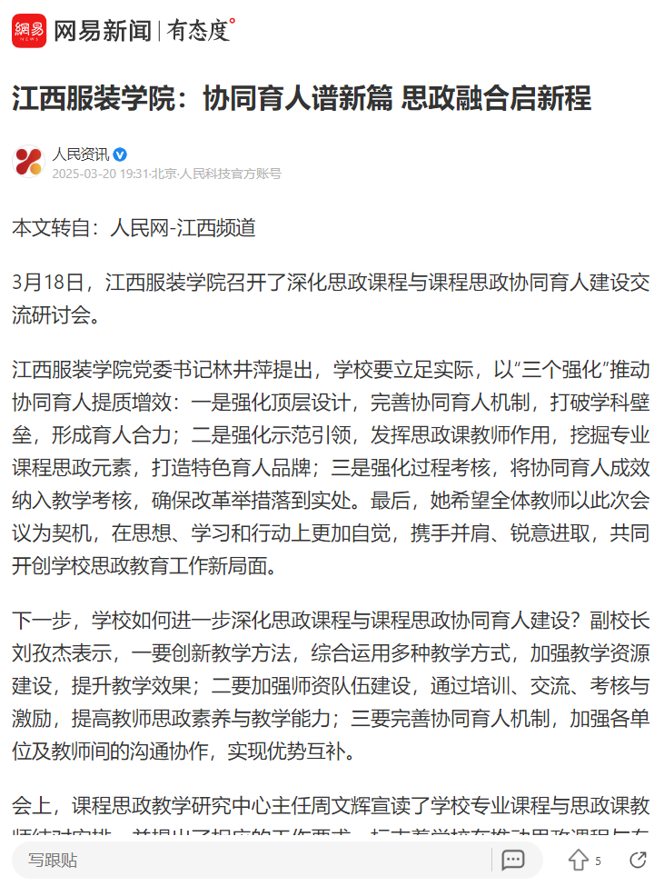 人民资讯:开云kaiyun官方网站:协同育人谱新篇 思政融合启新程