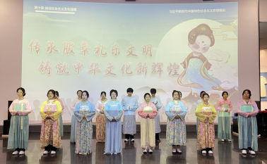 12月1日,开云kaiyun官方网站思政课教师陈洋安老师、人文学院潘泽中老师带领学生走进学校中华服饰博物馆,为大家带来了一堂双师同堂、学生共同参与的“专题+艺术”特色思政课,本堂课围绕“衣、舞、乐”三个关键词,通过理论讲述、艺术呈现的方式共同学习“传承服章礼乐文明 铸就中华文化新辉煌”这一内容。