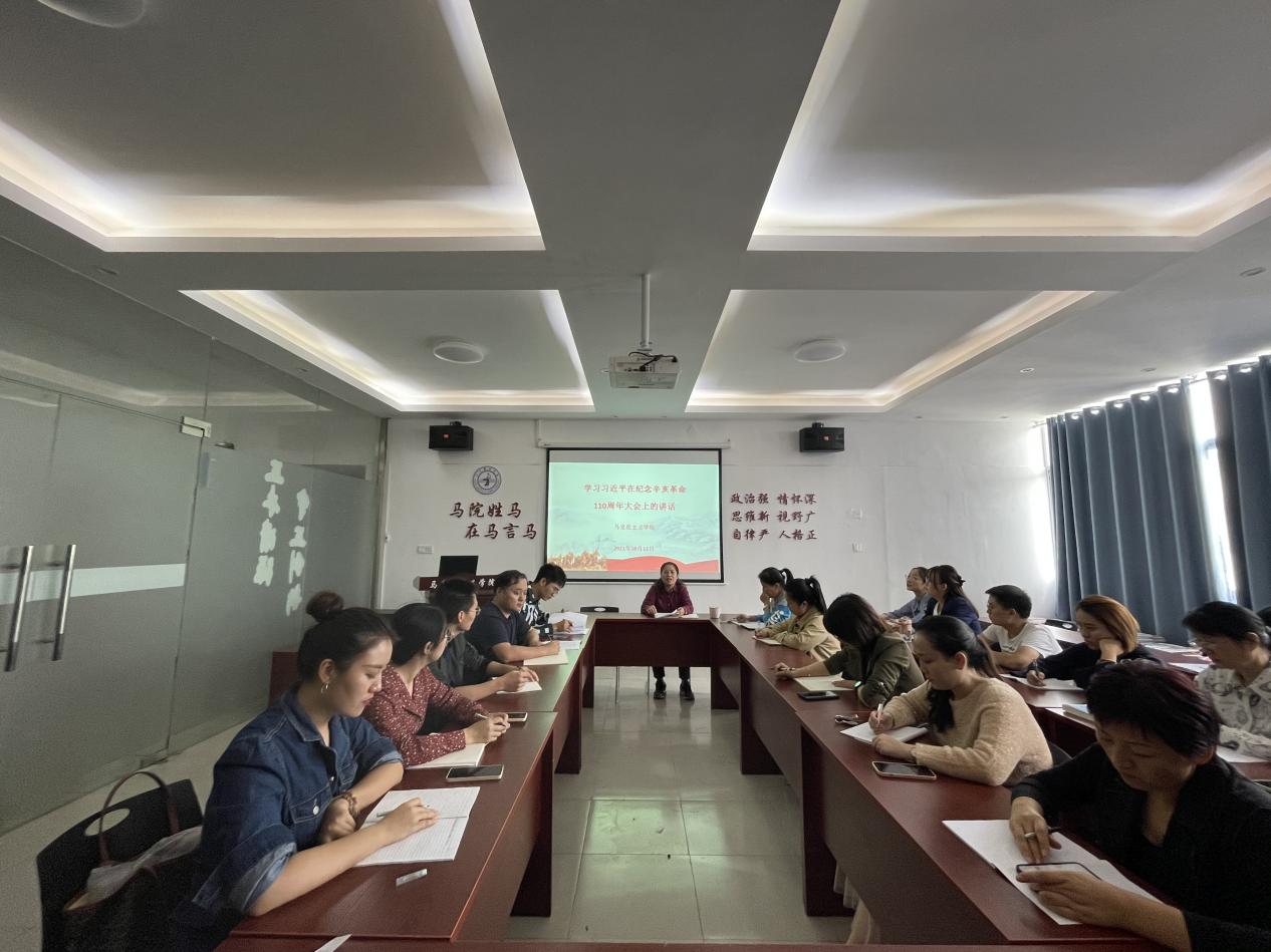 【开云kaiyun官方网站 张馨文撰稿】2021年10月9日上午,纪念辛亥革命110周年大会在人民大会堂隆重举行,习近平总书记出席大会并发表重要讲话。我院组织全院教师收看大会直播,聆听习近平总书记重要讲话,重温辛亥革命推动思想解放与社会变革的峥嵘岁月,领悟辛亥革命伟大意义。10月12日下午,我院在马克思学院会议室再次组织全院教师认真学习习总书记在纪念辛亥革命110周年大会上重要讲话,会议由周丽琴院长主持。