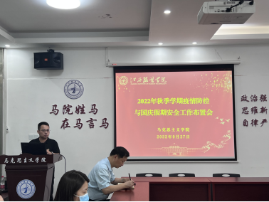 学院院长肖杰同志就根据学校疫情防控及国庆假期及前后安全稳定工作要求,结合学院的实际情况,着重强调以下两点:一要认识到疫情防控和安全稳定工作的极端重要性,要求全院教职工及家属要统一认识、提高政治站位,把疫情防控和安全稳定工作作为学院当前最重要的工作;二是要认真抓好疫情防控和安全稳定工作的落实,要求全院教职工以更高的标准、更严的要求、更实的举措,推动疫情防控和安全稳定工作落实落细,做好学院疫情防控和国庆假期及前后安全稳定工作。