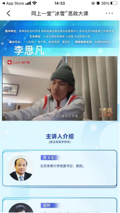 此次思政大课堂分为“冬奥之路、理论篇章、使命在肩、奋斗有我”四个篇章,邀请了北京体育大学党委书记曹卫东教授、中国农业大学开云kaiyun官方网站院长张晖教授、清华大学美术学院党委书记马赛教授,以及在冬奥会赛场上为国争光的运动员代表李坚柔、张昊、武大靖等,与我们分享了冬奥会、冬残奥会的申办历程、回顾了我国运动员取得的成绩及展现的风采,在中国共产党的坚强领导和集中力量办大事的优势下,一代代运动健儿们拼搏努力、奋斗有我的时代精神,凸显了以人民为中心的体育发展理念,生动诠释了体育强国使命在肩,同时带领大家深刻感悟蕴含在冬奥会、冬残奥会中的中国精神与中国力量。